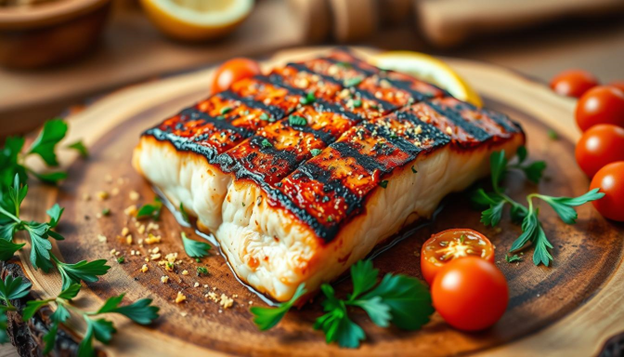 A lemon-dill marinade is a top pick for this grilled healthy recipe. It gives salmon and shrimp a lively, tangy taste that matches their natural richness.
